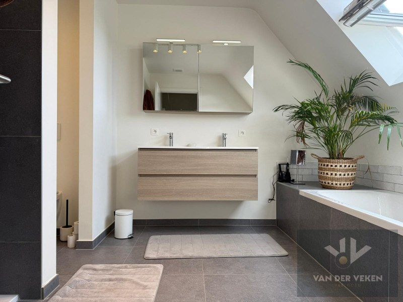 Deze recente BEN-woning (bijna energieneutraal) werd voorzien van alle moderne technieken: zonnepanelen, ventilatiesysteem D, vloerverwarming (behalve de slaapkamers) op aardgas en een regenwaterrecuperatiesysteem waar de toiletten op werden aangesloten. Hierdoor liggen de maandelijkse verbruikskosten bijzonder laag!