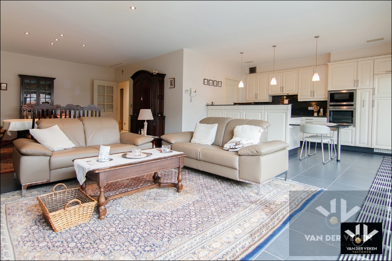 Ruim en licht appartement van 156 m² met een groot terras dat veel privacy biedt! De leefruimte van 60 m² met open keuken geniet van veel natuurlijk licht dankzij grote ramen met elektrische zonnescreens. Er zijn 3 ruime slaapkamers, waaronder één heel grote met ensuite dressing. Verder omvat het appartement een inkomhal, wasplaats, bijkeuken, apart toilet, nachthal en badkamer. De grote garage biedt extra opbergruimte en een veilige parkeerplek voor uw wagen. Met EPC label B is het energiezuinig en comfortabel. Stijlvol wonen met de voordelen van zowel stad als natuur.