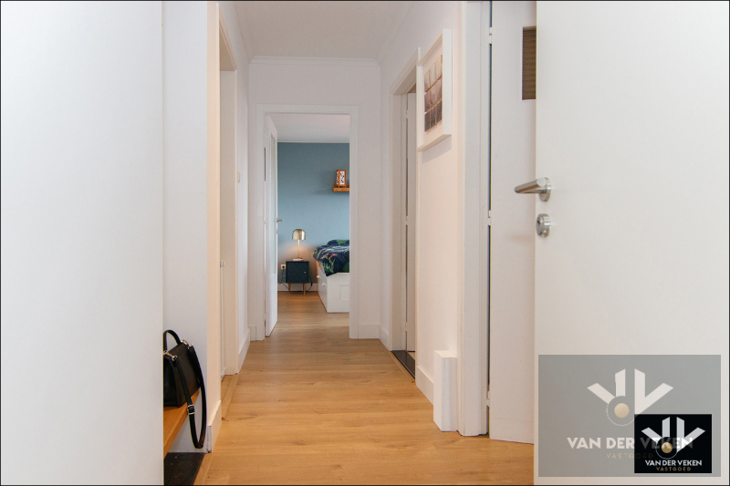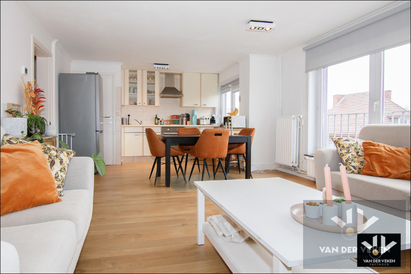 Er is opvallend veel natuurlijke lichtinval, dit dankzij de grote raampartijen in de leefruimtes. Aan de straatzijde is er de leefruimte met aansluitend de volledig geïnstalleerde en praktische keuken. De 2 slaapkamers en de badkamer met ligbad, wastafel en toilet bevinden zich aan de achterzijde van het appartement. Vanuit één van de slaapkamers hebben we toegang tot het overdekt terras, met een ruim zicht over de stadsomgeving. Praktisch is ook de integratie van wasmachine en droogkast in de kleine berging naast de keuken. In de kelder, waar je eventueel ook je fiets kan stallen, is er nog een privatieve bergruimte.