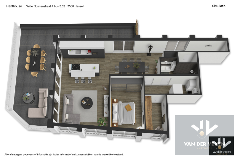 Luxueus afgewerkt penthouse voorzien van alle comfort en met een riant zonneterras, op de hoek van de Witte Nonnenstraat en de Demerstraat – pal in hartje Hasselt!